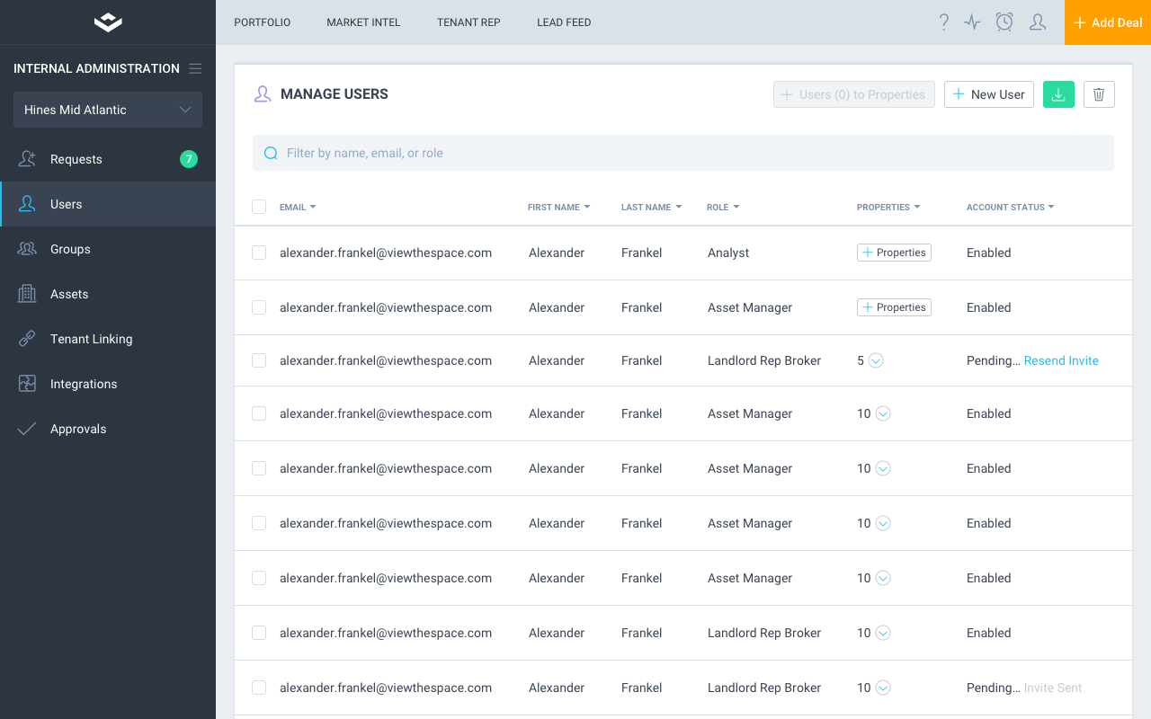 VTS’s Administration Panel was created for users (including VTS In-house teams) that had Admin permissions who needed to on-board and manage users, accounts, permissions and modules efficiently and effectively. All internal tools data research, workflow, design and iterations within this part of the platform were spearheaded by myself and a Product Manager.