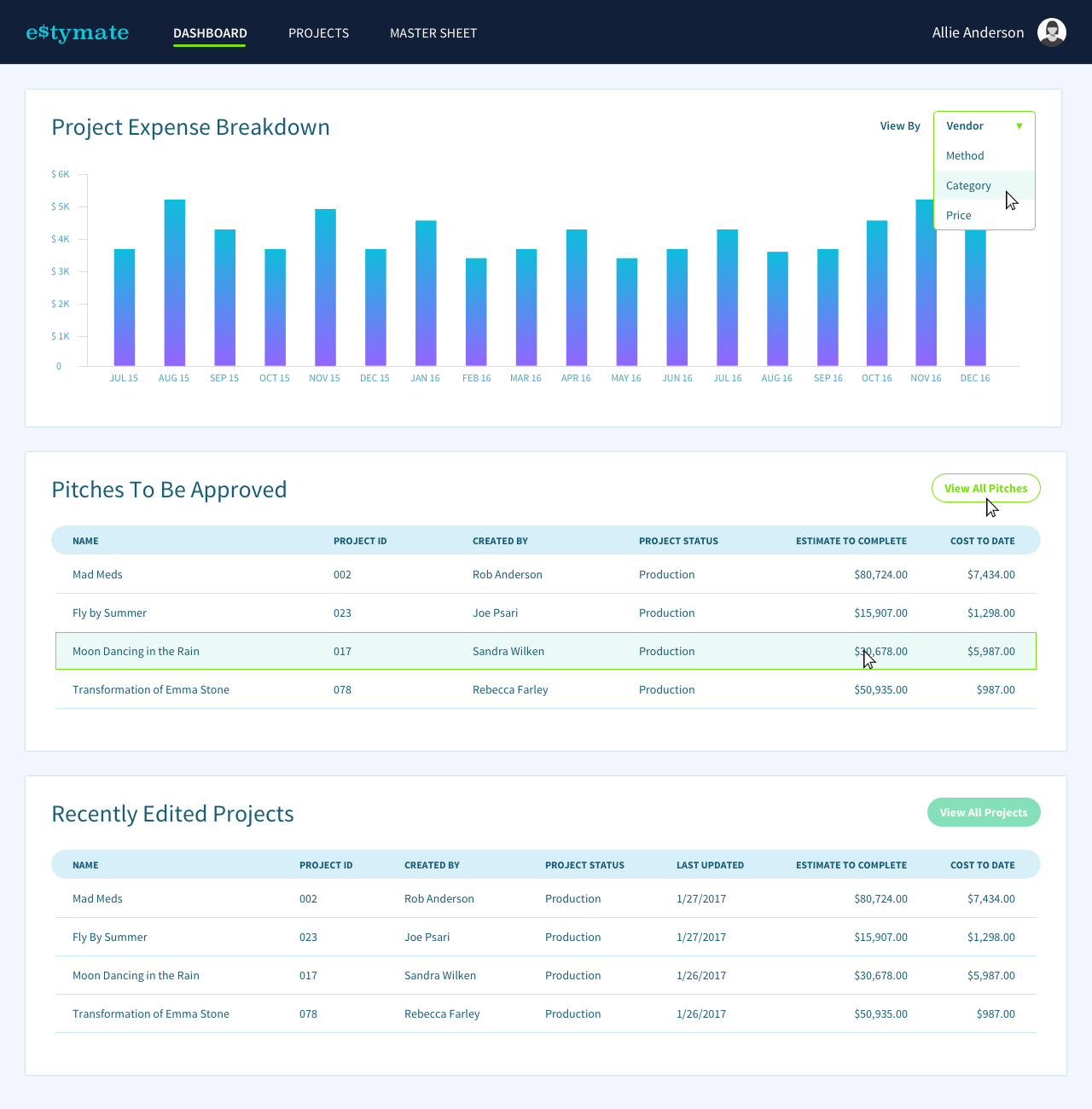 Estymate is a Film Production Budgeting application designed and built as an internal tool for Refinery29. All UX flow and UI kit created by myself in collab with engineers.