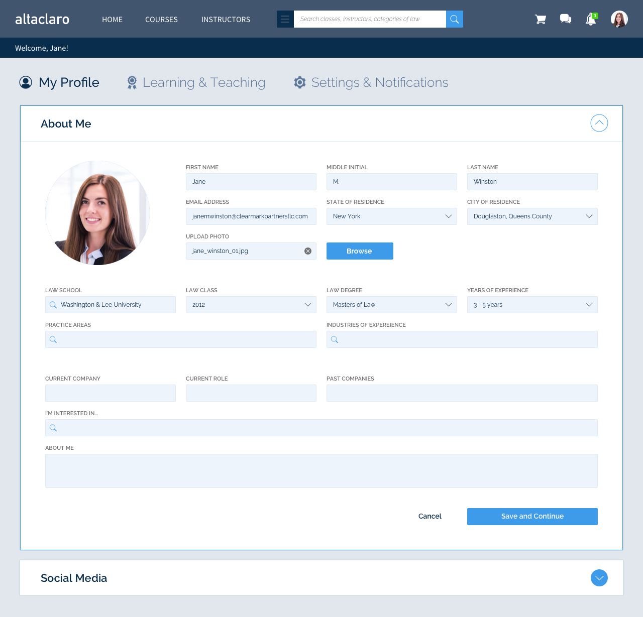 AltaClaro is Legal Field Learning Platform that allows law students to find mentorship, continued education and accredidation. High Fidelity Mockups seen here were a part of a full User Interface and User Experience overhaul vision.